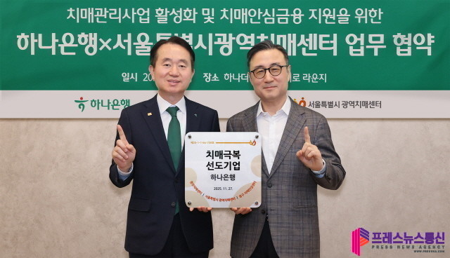 [프레스뉴스] 류현주 기자= 하나은행(은행장 이호성)은 지난 27일 하나더넥스트 을지로 라운지에서 서울특별시광역치매센터(센터장 이동영)와 『치매관리사업 활성화 및 시니어 맞춤 치매안심금융 지원을 위한 업무협약』을 체결했다고 밝혔다.