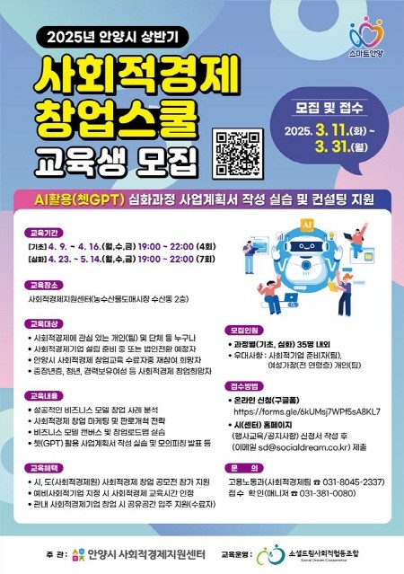 | ▲2025년 안양시 상반기 사회적경제 창업스쿨 교육생 모집 포스터(사진=안양시) |