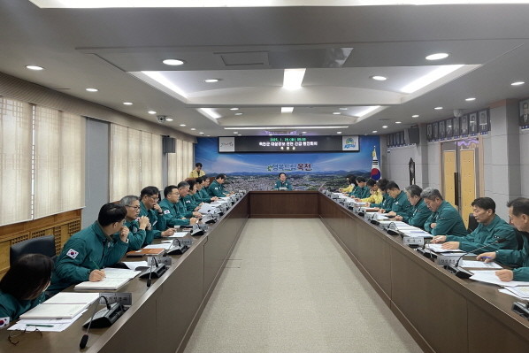 | ▲옥천군은 28일 06시30분을 기해 대설경보 발효됨에 따라 재난안전대책본부를 가동하고 황규철 옥천군수 주재로 긴급 현안 회의를 개최했다.(사진=옥천군) |