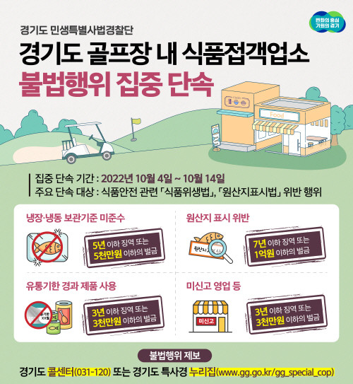 | ▲ 경기도 특사경, 경기도 골프장 내 식품접객업소 불법행위 집중 단속 그래픽(사진=경기도) |
