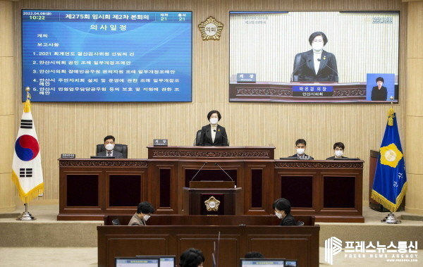 [프레스뉴스] 김대일 기자= 안산시의회(의장 박은경)가 8일 제275회 임시회 제2차 본회의에서의 안건 의결을 끝으로 275회 임시회 회기를 마쳤다.
