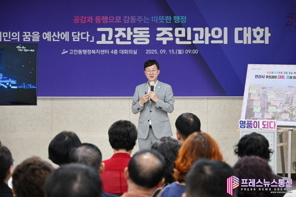 [프레스뉴스] 장현준 기자= 안산시(시장 이민근)는 지난 15일 고잔동행정복지센터 대회의실에서 ‘시민의 꿈을 예산에 담다’ 주민과의 대화의 장을 열고 고잔동의 발전 방향과 주민들의 의견을 공유하는 시간을 가졌다고 16일 밝혔다.