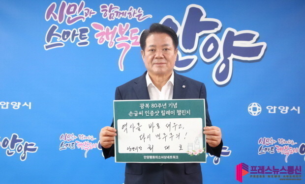[프레스뉴스] 장현준 기자= 최대호 안양시장은 1일 광복 80주년을 맞아 시민과 함께하는 ‘손글씨 인증샷 릴레이’에 동참했다.