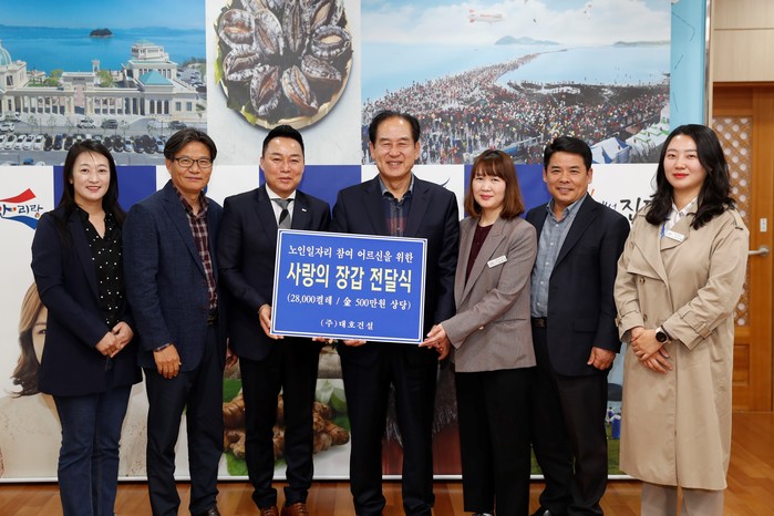 진도군의 향토기업인 DH그룹의 김남중 회장과 직원들이 진도군청을 방문, 노인일자리와 사회활동지원 참여 어르신들을 위해 500만원 상당의 작업용 장갑을 전달했다.