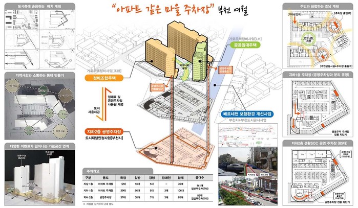 부천시 여월동은 전국 최초로 가로주택정비사업과 연계해 아파트 같은 마을주차장을 조성했다. 3,400㎡ 규모 부지에 85면의 공영주차장을 중심으로 동네 골목 환경이 정비되고 주거환경 전반이 개선되면서 주민 만족도가 높아졌다. 특히, 자가용 중심의 노후 주거지에 실질적인 해결책을 제시한 모범 사례로 평가받고 있다.