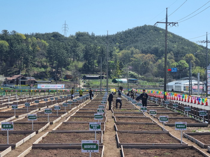 진주시 농업기술센터 앞 유휴공간을 활용해 1구획당 8㎡로 총 440구획의 텃밭이 조성돼 있으며 1구획당 사용료는 1만 6000원이다.