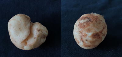 | ▲사진 왼쪽 감자 바이러스병, 오른쪽 감자 더뎅이병(사진=경기도) |
