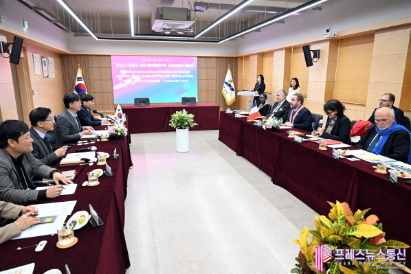 | ▲이민근 안산시장(왼쪽 세번째)이 지난해 프랑스 파리 동부행정구역 교류의향서 체결식 행사에 참여하고 있다.(사진=안산시) |