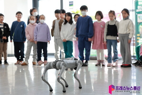 | ▲안산산업역사박물관 겨울방학 프로그램에 참여한 학생들이 로봇개 산박이의 시연을 보고 있다.(사진=안산시) |