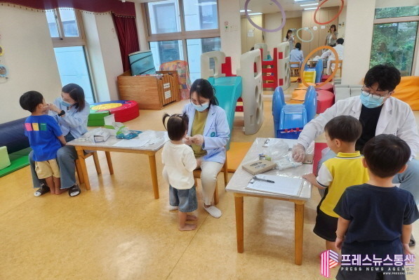 | ▲지난해 안산시 단원보건소에서 시립 보듬이나눔이 어린이집 아동들에게 불소도포사업을 진행하고 있다.(사진=안산시) |