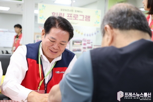 마주 앉은 어르신과 인사를 나눈 최 시장은 손과 팔을 안마하면서 “어르신 시원하신가요”라고 말하며 “오늘 마사지 받으시고 여름철 무더위 건강하게 잘 이겨내시길 바랍니다”라고 말했다.