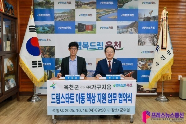 [프레스뉴스] 류현주 기자= 옥천군과 ㈜가구지음(대표 주대종)가 17일 옥천군청에서 옥천군 내 나눔문화 형성과 지역사회 복지증진을 위한 「드림스타트 아동 책상세트 지원 협약」을 체결했다.