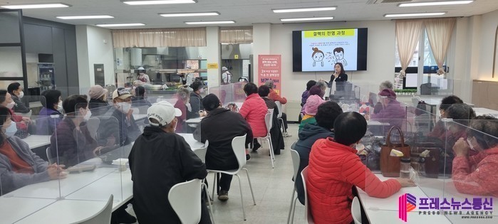 | ▲안산시 상록수보건소가 지난 27일 본오종합사회복지관에서 이용자와 지역 주민을 대상으로 결핵 예방 강좌를 진행하고 있다.(사진=안산시) |