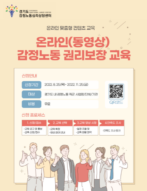 [프레스뉴스] 김대일 기자= 경기도가 감정노동자들의 권익 증진을 위해 ‘온라인 감정노동 권리보장 교육’을 개설해 운영한다고 29일 밝혔다.
