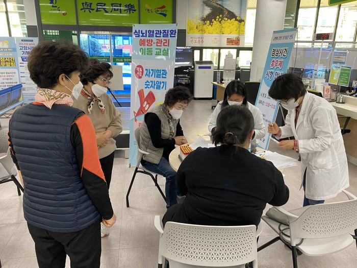 레드서클존에서는 자기혈관 숫자알기 프로그램을 통해 혈압, 혈당, 콜레스테롤 수치를 측정하고 심뇌혈관질환 예방 교육 등을 농업기술센터, 진도읍사무소 등을 방문, 진행했다.