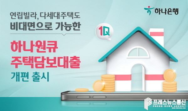 [프레스뉴스] 김대일 기자= 하나은행(은행장 박성호)은 비대면 주택담보대출 상품의 대출 대상을 기존 아파트에서 연립빌라, 다세대주택까지 확대 개편했다고 밝혔다.