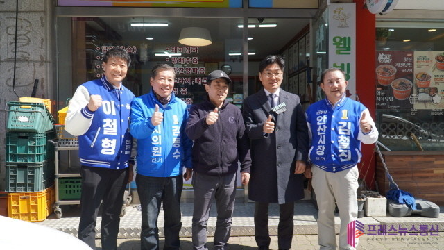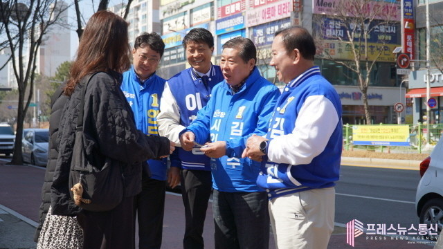| ▲김철진 안산시장 예비후보가 21일 토요일 오후, 박해철 의원과 선현우 시의원, 안산병 지역 시도의원 예비후보(이철형, 김동수, 안두회)들과 함께 초지동 항아리골 일대를 돌며 상인 및 시민들을 직접 만나는 뜻깊은 로드투어를 진행했다.(사진=김철진 안산시장 예비후보 선거캠프) |