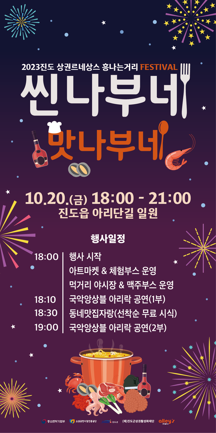 [전남=프레스뉴스] 신상균 기자= 전남 진도군이 오는 20일 오후 6시부터 진도읍 아리단길 일원에서 ‘씬나부네 맛나부네’를 개최한다.