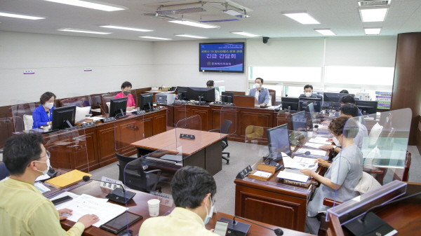 [프레스뉴스] 김대일 기자= 안산시의회 문화복지위원회(위원장 이기환)가 최근 안산시의 행정명령으로 추가 설치된 코로나19 임시선별검사소의 운영 현황을 파악하기 위해 간담회를 가졌다.