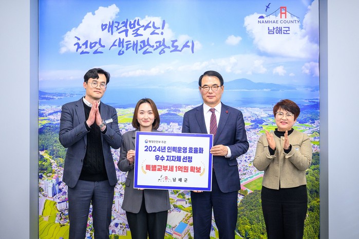 | ▲남해군이 경상남도 주관 ‘2024년 지역건설산업 활성화를 위한 지역건설업체 하도급 수주 지원 실적 평가’에서 군부 지역 1위로 선정되며, 특별조정교부금 1억 5000만 원을 확보했다. (사진=남해군) |