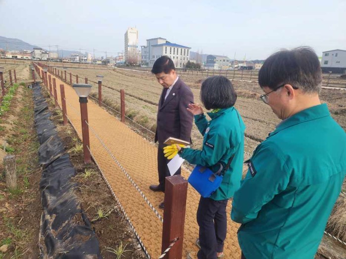 또한, 박태수 농업기술과장은 “경관지구의 지속적인 볼거리 제공을 위해 논두렁을 이용한 탐방로에 상록사초와 △봄을 상징하는 수선화, 작약, 마가렛 그리고 향기가 좋은 섬백리향, 알부카 △여름을 상징하는 실은쑥, 백묘국, 분홍낮달맞이, 황금낮달맞이 △가을을 상징하는 억새류(그린라이트), 상사화 △겨울을 상징하는 애기동백, 크리스마스로즈(Christmas rose)를 심고, 사계절 내내 푸른 상록으로는 사철, 황금사철, 은사철 등의 식재를 전문적으로 지도하고 있다”라고 전했다.