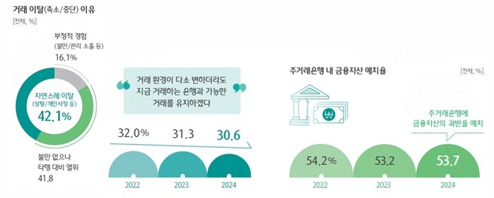 ▲거래 이탈 이유, 주거래은행 내 금융자산 예치율 그래픽(사진=하나금융연구소) |