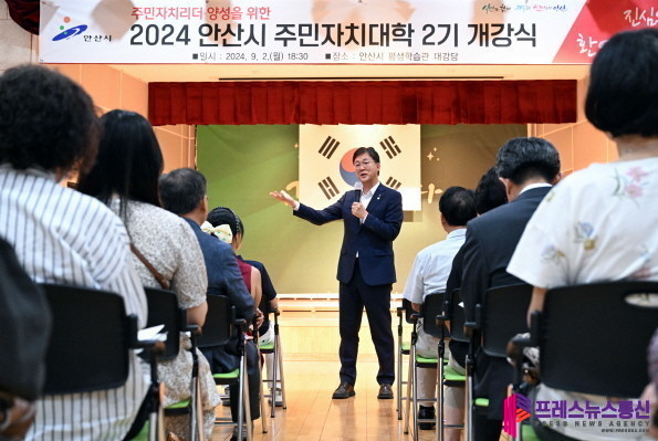 [프레스뉴스] 장현준 기자= 안산시(시장 이민근)는 지난 2일 평생학습관에서 지방자치를 선도하고 전문성을 갖춘 지역사회 시민 리더 양성을 위한 ‘제2기 안산시 주민자치대학 개강식’을 개최했다고 3일 밝혔다.