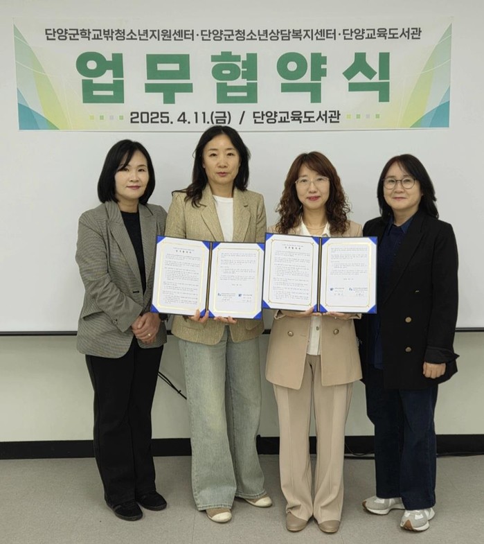 또 단양교육도서관에서 운영 중인 독서심리상담사 자격 과정을 통해 배출되는 독서치료 전문가들이, 단양군청소년상담복지센터와 연계해 청소년 대상 독서치유 프로그램 개발 및 자원봉사 활동에 참여할 계획이다.