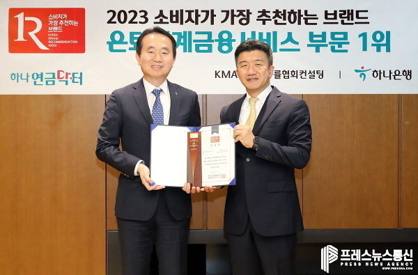 [프레스뉴스] 김대일 기자= 하나은행(은행장 이승열)은 한국능률협회컨설팅(이하 KMAC)에서 주관하는 ‘소비자가 가장 추천하는 브랜드’ 은퇴설계 금융서비스 부문 1위에 퇴직연금 전문 브랜드 『하나 연금닥터』가 선정됐다고 밝혔다.