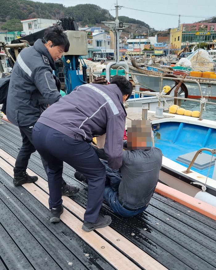 때마침 소내근무중이던 통영해경 욕지출장소 경찰관은 어디선가 소리가 들리는 것을 인지해 주변을 살펴보다가 바다에 빠져 허우적대는 A씨를 발견, 긴급구조했다.