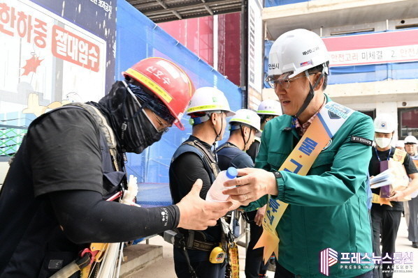 [프레스뉴스] 장현준 기자= 안산시는 지난 17일 이민근 시장이 폭염 속 건설 근로자의 온열질환 사고 예방을 위해 현장을 점검하고 민관합동 온열질환 예방 캠페인을 진행했다고 18일 밝혔다.