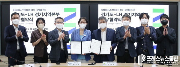 경기도는 2일 도청에서 한국토지공사(LH) 경기지역본부와 업무협약을 체결하고 쉼터로 활용될 용인시 내 LH 매입임대주택 연접한 2개 호를 임차할 예정이다.