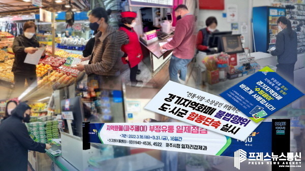 [프레스뉴스] 강보선 기자= 경기도는 3월 16일부터 4월 7일까지 도내 31개 시군 경기지역화폐 가맹점을 대상으로 ‘2022년도 상반기 경기지역화폐 부정유통 일제 단속’을 벌여 총 62건을 적발해 처분했다고 25일 밝혔다.