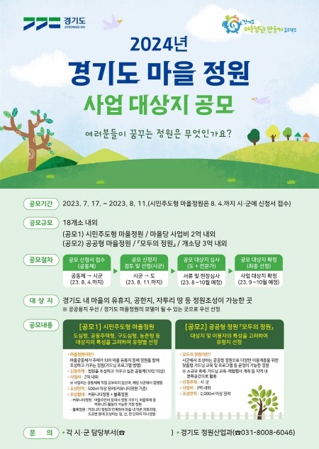 | ▲ 2024년 경기도 마을 정원 사업 대상지 공모 포스터(사진=경기도) |