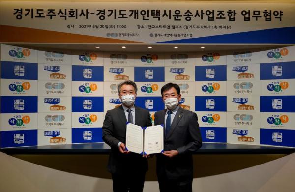 경기도주식회사와 경기도개인택시운송사업조합은 지난달 28일 성남시 판교 스타트업캠퍼스에서 이 같은 내용의 ‘공공플랫폼 확대를 위한 업무협약’을 체결했다고 5일 밝혔다.