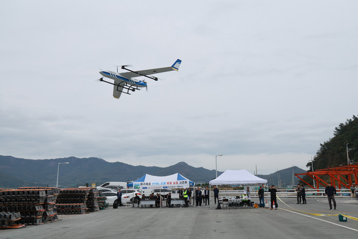 이날 비행체에 1.5kg의 물품을 싣고 완도 화흥포항에서 소안도까지 총 50km의 거리를 왕복하는 비행 실증이 이뤄졌다.
