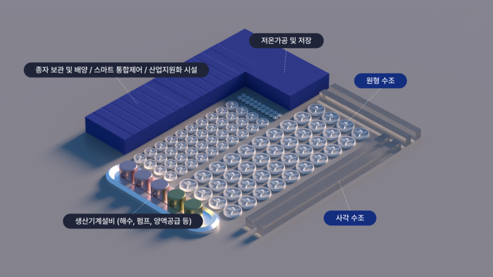 「해조류 바이오 스마트 팩토리」는 고기능성 해조류의 계절적 생산 한계를 극복하고 바이오 원료를 표준화할 수 있는 육상 생산·가공 설비를 구축해 원료를 기업체에 공급하는 시설이다.