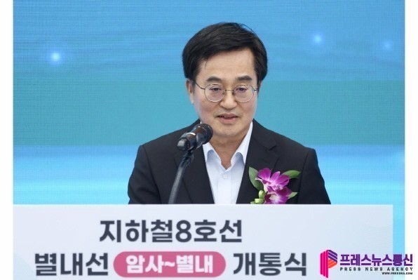 | ▲2024년 8월 9일 오후 남양주 별내역에서 열린 지하철 8호선 연장 별내선 개통식에서 김동연 경기도지사가 인사말을 하고 있다.(사진=경기도) |