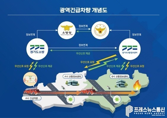▲ 경기도형 ITS-광역 긴급차량 우선신호 개념도(사진=경기도북부청) |