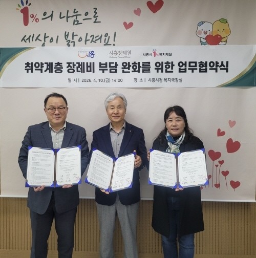[프레스뉴스] 장현준 기자= 시흥시는 ㈜시흥장례원, 시흥시1%복지재단과 함께 ‘취약계층 장례비 부담 완화를 위한 업무협약’을 지난 4월 10일 체결했다.
