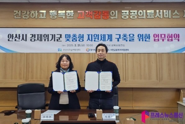 [프레스뉴스] 장현준 기자= 안산시(시장 이민근) 자살예방센터는 지난 21일 경기도서민금융복지지원센터(안산센터)와 경제위기군 맞춤형 지원 체계 구축을 위한 업무협약을 체결했다고 24일 밝혔다.