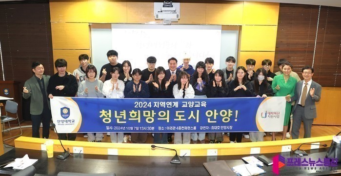 [프레스뉴스] 장현준 기자= 최대호 안양시장이 7일 오후 1시 30분부터 1시간 동안 안양대 아리관에서 안양학 특강을 진행했다고 8일 밝혔다.