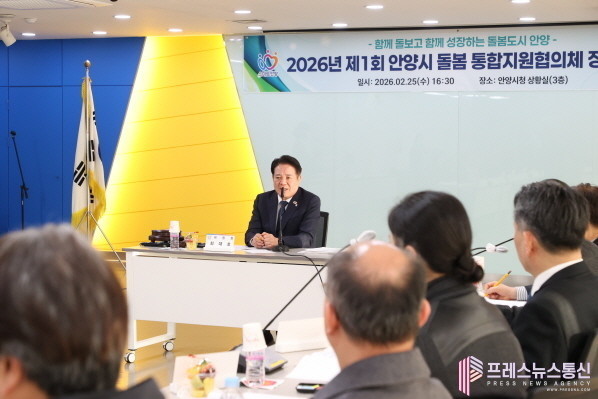 [프레스뉴스] 장현준 기자= 안양시(시장 최대호)는 25일 오후 4시 30분 시청 3층 상황실에서 ‘의료·요양·돌봄·주거 통합지원을 위한 통합지원협의체’ 위촉식 및 정기회의를 열고, 지역사회 통합돌봄 체계 구축에 본격 착수했다고 26일 밝혔다.