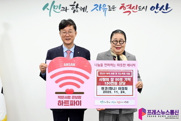 [프레스뉴스] 장현준 기자= 안산시(시장 이민근)는 지난 24일 씽코(대표 이정희)로부터 사랑의 쌀 50포(10kg)를 기탁받았다고 25일 밝혔다.