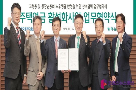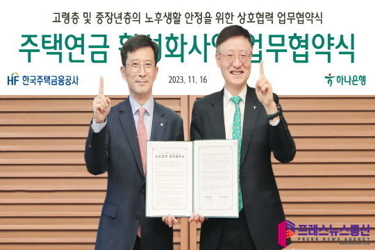 [프레스뉴스] 김대일 기자= 하나은행(은행장 이승열)과 한국주택금융공사(사장 최준우)는 16일 오후 서울특별시 중구 을지로 하나은행 본점에서, 고령층 및 중장년층의 노후생활 안정을 위한 주택연금 활성화 사업 업무협약을 체결했다고 밝혔다.