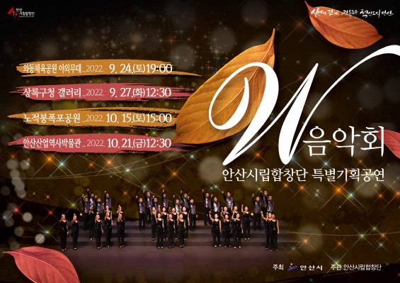이영분 문화예술과장은 “시민들의 일상 속에 안산시립합창단의 아름답고 조화로운 합창의 선율이 녹아들어 깊어진 가을 정취를 느낄 수 있길 바란다”고 말했다.