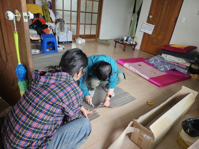 이날 봉사에는 회원 10여 명이 참여했으며, 비가 내리는 궂은 날씨에도 불구하고 안전한 생활환경을 조성하기 위해 미끄럼방지매트를 설치하고 집안을 정리하는 등 따뜻한 손길을 보탰다.