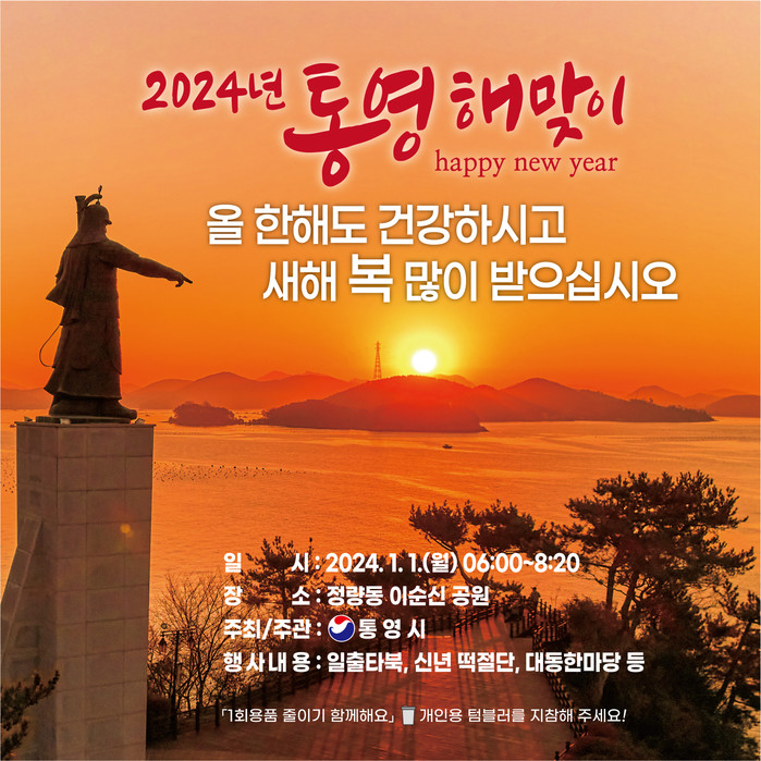 다사다난했던 2023년 계묘년(癸卯年) 한 해를 보내고 새해를 맞이하면서 시민들이 희망찬 새 출발을 다짐하고, 시민과 함께 미래 100년의 도시 통영을 기원하는 이날 행사는 소원 기원초 밝히기, 모듬북과 팝페라 공연, 신년 축하메시지 전달, 신년 떡 절단, 시민대동한마당 등 다양한 프로그램으로 진행된다.