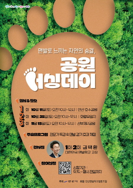 행사 참가비는 무료이며, 참여를 원하는 시민은 안산시청 누리집 ‘시정소식-새소식’란에 게시된 참여신청 QR코드로 접속해 사전 신청하면 된다. 자세한 사항은 안산시청 공원과(031-481-2415)로 전화 문의하면 안내받을 수 있다.