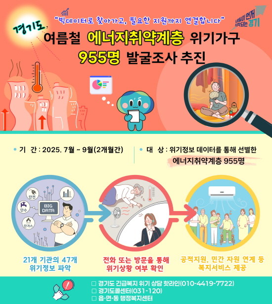 ▲경기도, 여름철 에너지 취약계층 위기가구 955명 발굴조사 추진 그래픽(사진=경기도) |